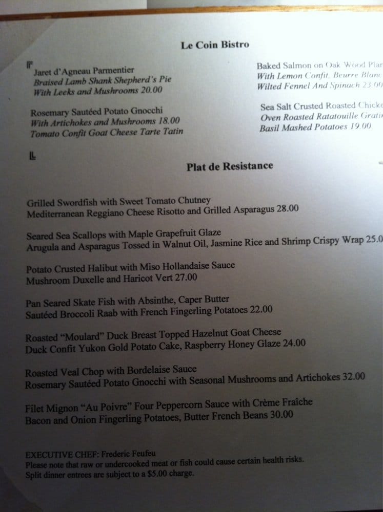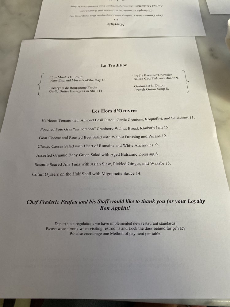 Introducing the menu at Bleu, a French restaurant located at 10 Market St Mashpee, MA 02649, offers a delightful selection of dishes. From Les Hors D'oeuvres like Butternut Squash Soup to Les Specialities like Hazelnut Cranberry Chicken Salad, the menu boasts a variety of options. The Plats de Resistance section features mouthwatering dishes like Filet Mignon and Seared Sea Scallops. Customers rave about the exceptional service, cozy atmosphere, and delicious food at Bleu, making it a must-visit spot. Whether you're in the mood for a classy dinner or a relaxing brunch with live jazz music, Bleu promises a memorable dining experience. Don't miss the chance to indulge in their delectable desserts and signature cocktails. Bon appétit at Bleu!